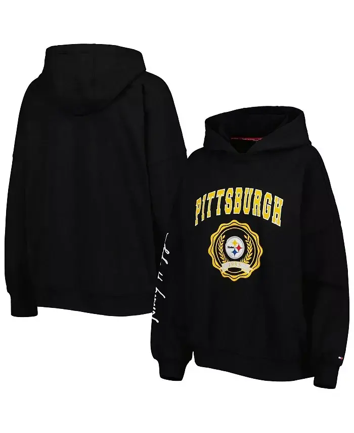 Women's Black Pittsburgh Steelers Becca Drop Shoulder Pullover Hoodie-Black