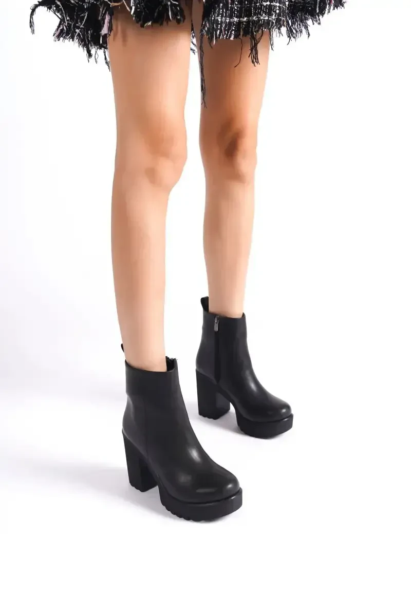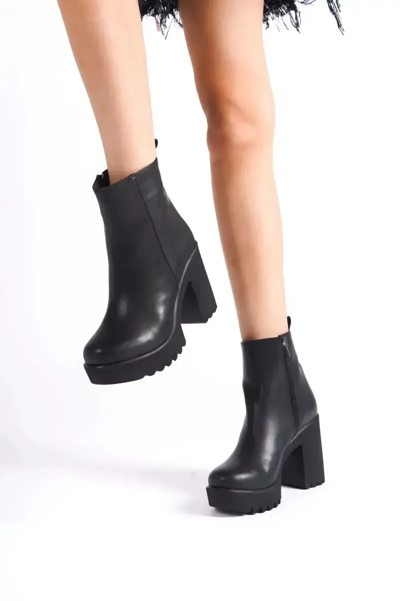 Women's Black Platform Heel Boots - Black Platform Zippered, poised to become an indispensable part of your wardrobe with Shoesers quality! Combining elegance and comfort, these boots will make you stand out in any setting. Whether for daily use or a special event, you can complete your style with these boots. Moreover, this special product offered at a campaign price is waiting for you with a limited number of stocks. Don't miss the opportunity!Shoesers has carefully designed and presented this product to you, prioritizing quality and durability. Made of artificial leather, these boots offer an environmentally friendly option and promise long-lasting use. Thanks to the comfortable structure of the insole, your feet will be comfortable all day long, and you will not feel tired.One of the most striking features of this boot is that it is easy to clean. You can clean it practically by wiping it and ensure that your boots always look like the first day. The woven fabric type increases the durability of the boot, allowing you to use it for many years. The chunky heel design offers both a stylish look and a stable walking experience. These boots, which can adapt to any environment from day to night, will be the most used piece of your wardrobe.Artificial leather details add a modern and stylish touch to the boot, while the zippered fastening provides ease of use. The medium heel height (5-9 cm) provides ideal height, allowing you to be comfortable and highlighting your elegance. Made of 100% artificial leather, it offers an animal-friendly option and dazzles with its aesthetic appearance. Produced with Shoesers quality, these boots are the perfect choice to reflect your style.Remember that a product can be sold by more than one seller. Therefore, you can determine the most suitable option for you by considering prices, seller ratings, delivery conditions and other factors. Also, you can order a maximum of 10 of these products. Orders over 10 units may be canceled by Trendyol. Different limits may be set for corporate orders.Shoesers prioritizes customer satisfaction. Therefore, if you are not satisfied with the product, you can return it free of charge within 15 days. You can review the return conditions for detailed information. Experience elegance and comfort together with Women's Black Platform Heel Boots - Black Platform Zippered!