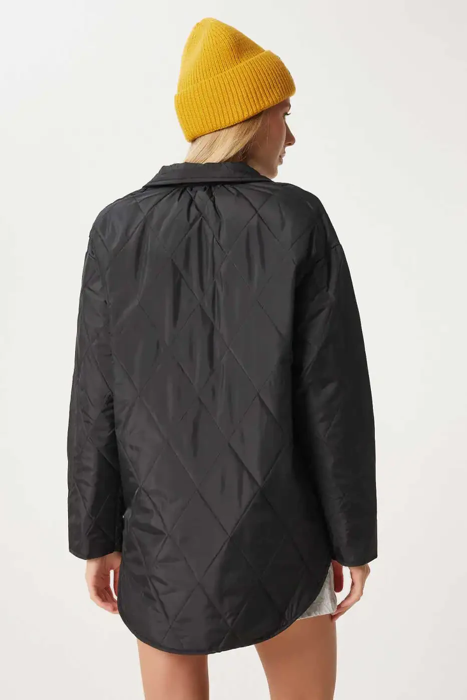 Women's Black Pocket Oversized Quilted Jacket FO00001