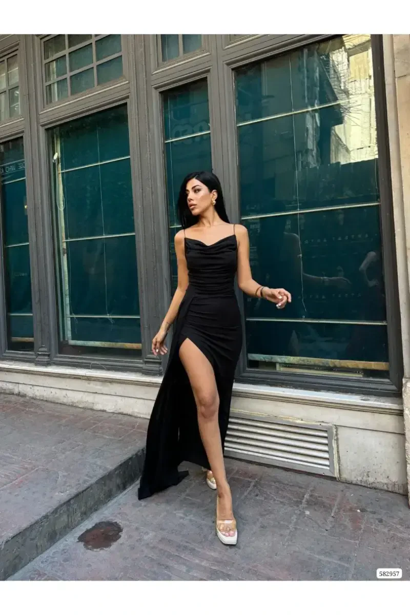 The Women's Black Spaghetti Strap Glittery Fukuro Fabric Evening Dress offered by Mafcollection combines elegance and style. With its maxi length, eye-catching glitter details, and modern spaghetti strap design, this evening dress will ensure you capture all the attention on your special occasions. The texture of the Fukuro fabric offers both comfortable use and guarantees the dress's longevity. The straight cut gently emphasizes your body lines, while the regular fit does not restrict your freedom of movement. Whether it's a wedding, engagement, or a special invitation, you'll feel special in any setting with this evening dress. Combining the nobility of black with the sparkle of glitter, this design can be easily combined with different accessories. You can make a statement at the night with a stylish necklace and high heels, or you can capture a simpler elegance with minimal jewelry and sandals. Appealing to all age groups, this evening dress is a candidate to be an indispensable part of your wardrobe. This special design, which will maintain its original appearance for many years with dry cleaning recommendation, is both a stylish and practical choice. This evening dress, offered with Mafcollection quality, is a detail that will make your special moments unforgettable. Hurry for this special design produced in limited numbers and enjoy the pleasure of elegance. Remember, this evening dress is not just a garment, but also a style statement. The right choice to feel special and dazzle in every environment. Make your style speak with this evening dress offered with special opportunities for Trendyol.