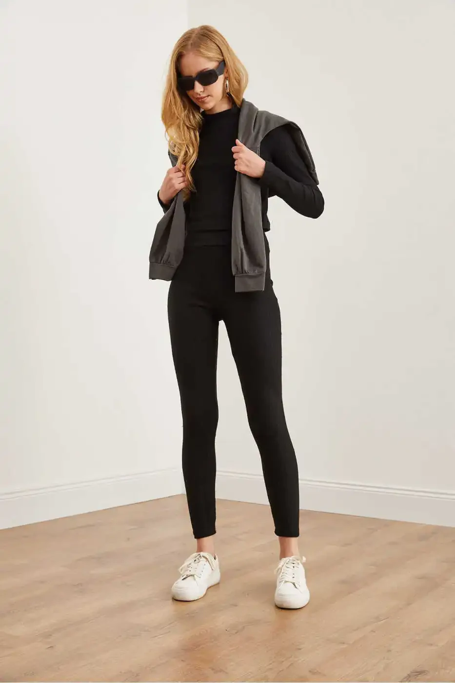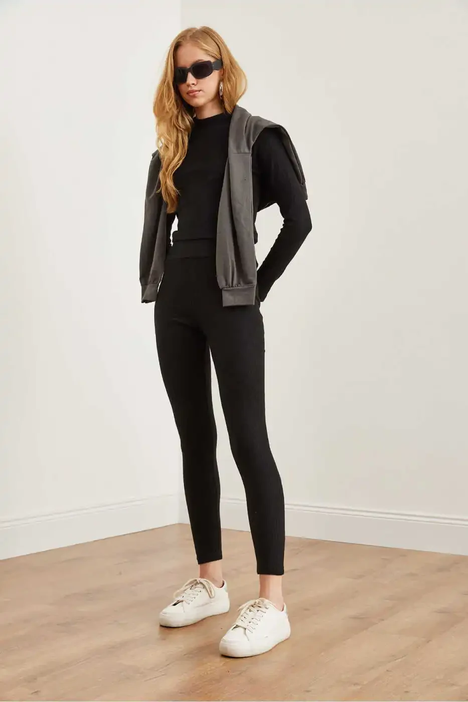 Women's Black Corded Thistle Ribbed Suit | Trendyol