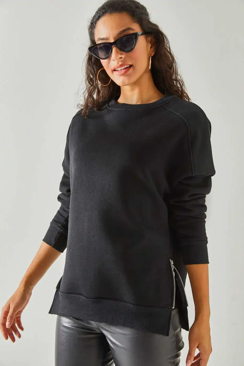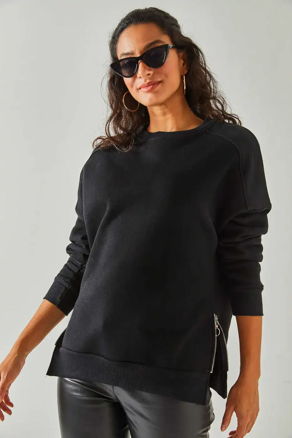 **Women's Black Zippered Sweatshirt with Fleece Lining (SWT-19000624)**This **premium** quality sweatshirt by [page=merchant_info]Trendyol - Olalook[/page] will keep you **warm and cozy** during the cold weather season thanks to its **soft and toasty** fleece lining. It features a stylish **zippered** design on the sides and is crafted from a durable and **breathable** blend of 70% cotton and 30% polyester.**Specifications:*** **Model Size:** Height 1.76 m, Bust 80 cm, Waist 60 cm, Hips 90 cm* **Size on Model:** S/36/1* **Measurements:** Length/Bust: 67/56 cm* **Color:** Black**Promotional Details:*** Take advantage of our **discounted** prices with over 10 units in stock.* Enjoy **free shipping** and **free returns within 15 days**.* Please note that Trendyol reserves the right to cancel orders exceeding 10 units.This sweatshirt is a perfect addition to your winter wardrobe, combining both style and comfort for your everyday outfits.