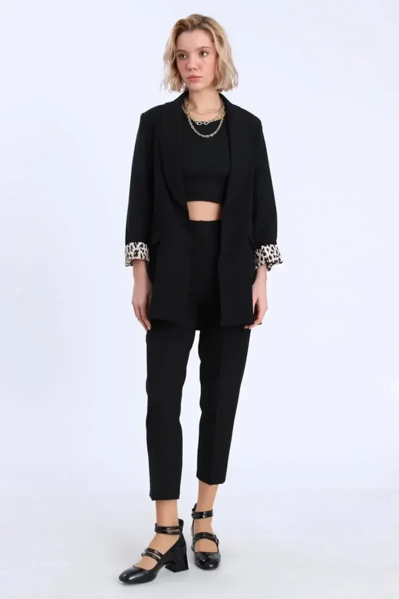 Complete your style with the Women's Blazer Jacket with Shawl Collar and Leopard Detail, which combines elegance and comfort!