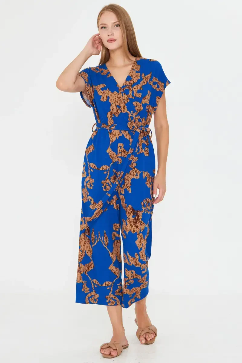 Women's Blue-Beige Crossover Jumpsuit | Stylish and Modern Design