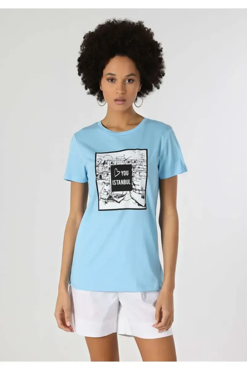 The Regular Fit Crew Neck Printed Blue Women's Short Sleeve T-Shirt is an excellent choice for women looking for a comfortable and stylish design that will help you complete your daily style in a chic way. It will become an indispensable part of your wardrobe.