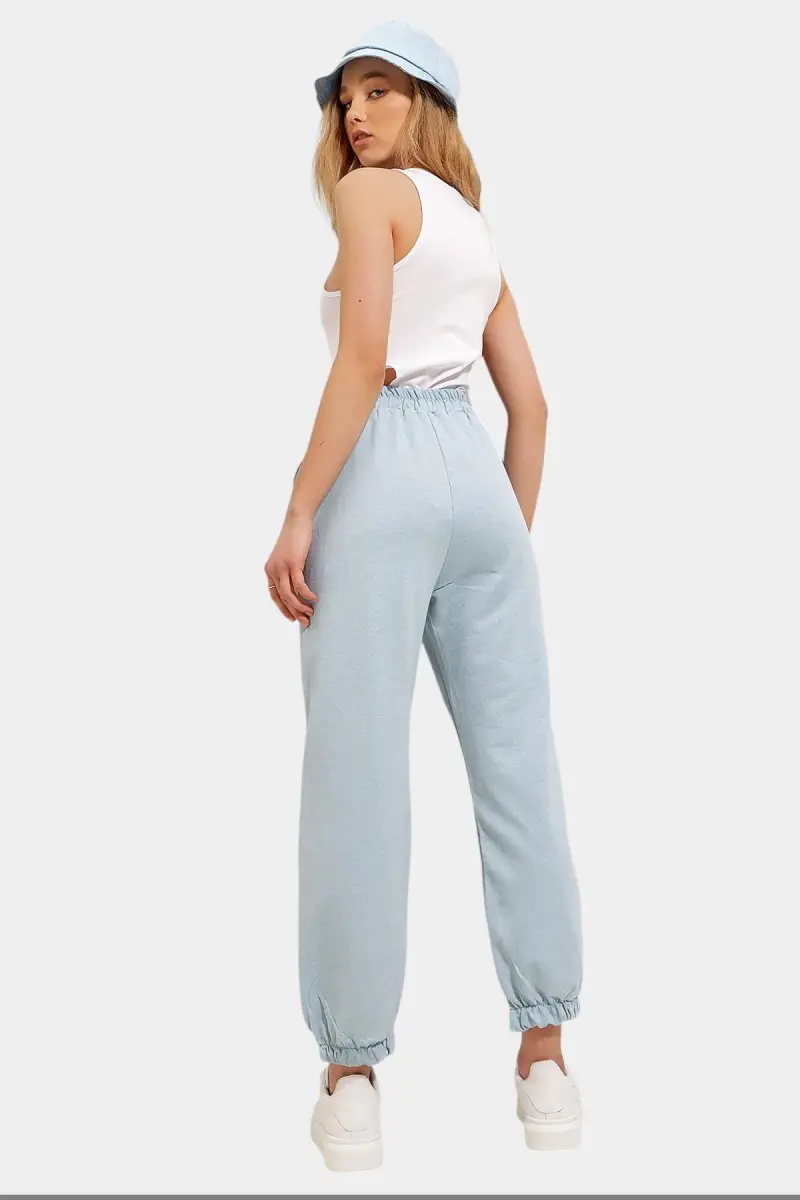 Combining everyday comfort and style, the Women's Blue Cuffed Two-Thread Sweatpants is an ideal choice for women seeking comfort and style. The lightweight and soft texture provides comfortable wear all day long, perfect for your sporting activities, lounging at home, or walking outside.