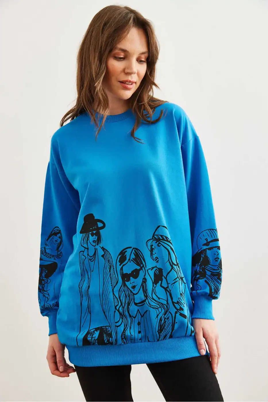 Women's Sweatshirt, Oversized Sweatshirt, Blue Sweatshirt, Figured Sweatshirt, Comfortable Sweatshirt, Stylish Sweatshirt