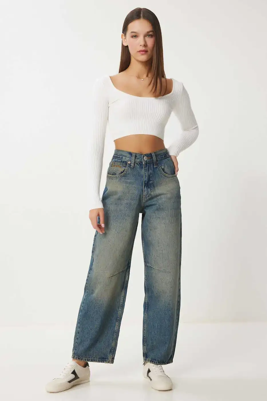Add freedom and comfort to your style with the Women's Blue High-Waisted Light Effect Baggy Jeans UT00027! This stylish pair of jeans, shipped by Trendyol, is available at a campaign price, but only while limited stocks last. The high-waisted design and baggy cut allow you to achieve a look that is both modern and comfortable. The light-wash effect details give the jeans a vintage feel, making them unique. Made from 100% cotton fabric, these comfortable and breathable pants offer all-day comfort. Its back belted design and 5-pocket structure also ensures functionality. Products offered by different sellers are ranked according to criteria determined by Trendyol, taking into account factors such as price, seller rating, delivery time, and stock status. You can order a maximum of 10 units of this product; orders exceeding 10 units may be canceled by Trendyol. Different limits may apply for corporate orders. You can shop with peace of mind thanks to the 15-day free return option. For detailed return conditions, please visit the relevant page. The length of the product on the model is 98 cm, and the waist measurement is 36 cm. Please note that there may be slight differences in colors due to lighting differences in studio shots. Model measurements: Height: 1.72 cm, Bust: 83 cm, Waist: 58 cm, Hips: 87 cm. This information will help you choose the right size. Add these baggy jeans, in which you will feel comfortable and stylish, to your cart now!