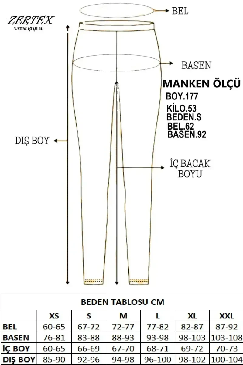 The Women's Blue Sports Leggings are specifically designed for women who embrace an active lifestyle and don't want to compromise on style. With its suitability for all seasons, these leggings will become an indispensable part of your wardrobe. The high-waisted design provides comfortable wear all day long, while perfectly complementing your body lines and boosting your confidence. The long length visually elongates your legs, while the slim-fit ankles add a modern and dynamic look. The slim fit gently hugs your body, creating a firming effect and helping you achieve a more shapely silhouette with its compression feature. The energy of the blue color and the plain pattern can be easily combined with different tops, so you can reflect your style both while exercising and in your daily activities. Made from a blend of cotton and polyester, the fabric offers both durability and breathability. This ensures that your skin breathes comfortably even during intense workouts, prioritizing your comfort. The double pocket detail allows you to safely carry small items such as your phone, keys, or cards, without restricting your freedom of movement. Thanks to its high-quality material, it is easily washable and remains as new as the first day for a long time. Being made from sustainable materials allows you to make an environmentally conscious choice and supports your awareness of protecting nature. These leggings are an ideal choice for women who seek comfort, style, and functionality while exercising or in their daily activities. Whether in a yoga studio, on a running track, or strolling around the city, these leggings will always accompany you and complete your style. This special design leggings, offered with ZERTEX quality, are set to become an indispensable part of your active life. Increase your performance and maintain your elegance with these leggings. Women's Blue Sports Leggings open a new dimension in sportswear, offering the perfect harmony of comfort and style.