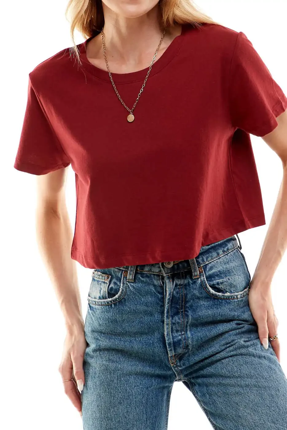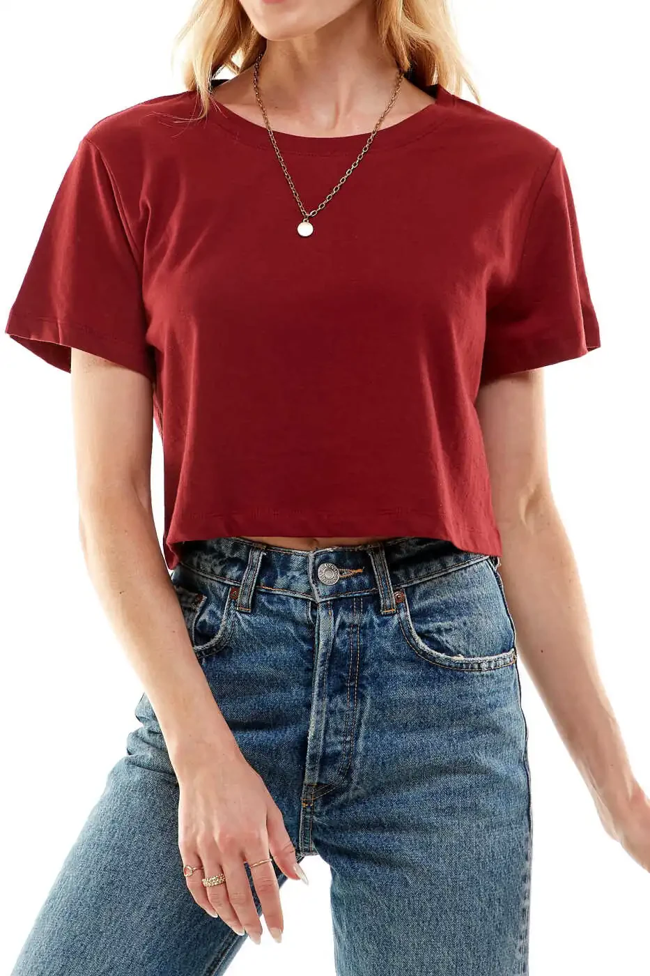 Women's Boxy Crop Top, which offers elegance and comfort together, a must-have for women's wardrobes, is now in your wardrobe! This special design made of 100% premium cotton, provides comfort all day long while touching your skin gently. This crop top, which combines with the elegance of burgundy color, is designed to suit every style. Whether while doing sports, in daily life, or at a special event, this piece will complete your style. This crop top, which will feel like nothing on you with its soft texture and light structure, does not restrict your freedom of movement and keeps you feeling fresh all day long. The stylish boxy cut offers a modern and trendy look, while the round neck and short sleeves add a classic elegance. Its loose cut does not stick to the body and offers a comfortable use. You can easily combine this crop top with your jeans, shorts, or leggings, which will add dynamism to your style. You can use it comfortably while exercising, in the gym, doing yoga, dancing, biking or running. At the same time, it stands out as a piece that completes your elegance in your daily combinations. Combine it with an elegant skirt or comfortable jeans, you will always be eye-catching. This crop top is not just a piece of clothing, it is an expression that reflects your style. You will not compromise on your comfort while revealing your unique style. Women's Boxy Crop Top is the perfect choice for women looking for quality, comfort, and elegance together. You will be amazed by the quality of the premium cotton fabric and you will feel special every time you wear it. Please note that, due to the nature of the product's materials, there may be some shrinkage after washing. Therefore, it is important to pay attention to the care instructions for long-lasting use. Women's Boxy Crop Top will be a must-have for your wardrobe. This special design, which will impress you with its elegance, comfort, and quality, will bring a new breath to your style. Don't wait any longer to feel both stylish and comfortable, add this unique piece to your wardrobe now!