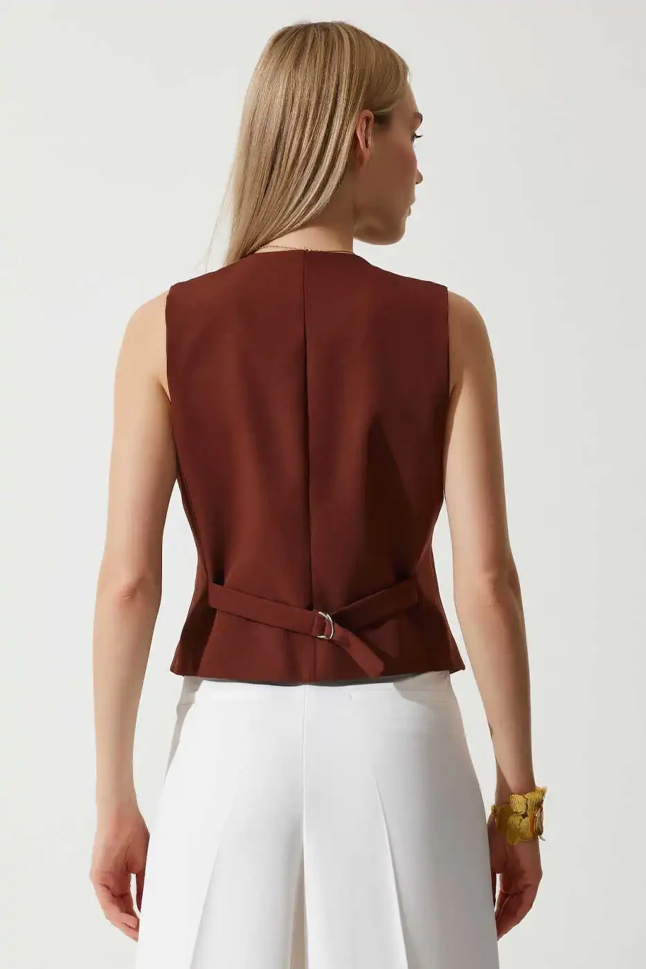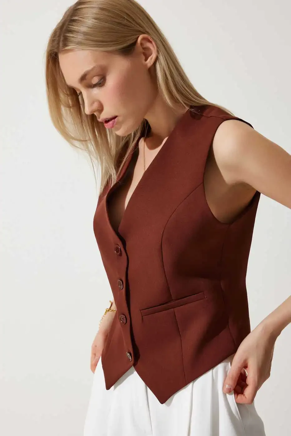 Add a touch of style to your look with the Women's Brown Bodycon Short Woven Vest TO00048! This special vest, brought to you with the guarantee of Trendyol - Happiness İstanbul, offers the perfect blend of modern and feminine looks. Don't miss out on this product, offered at a campaign price with over 100 in stock. Its bodycon fit creates an elegant silhouette, while the aerobin woven fabric combines lightness and breathability. The V-neck design delicately accentuates your neckline, while the belt detail accentuates your waist, highlighting your feminine curves. Experience both comfort and style with its plain design and thick straps. The medium-weight woven material provides ideal comfort during seasonal transitions. The lined structure offers extra comfort and durability. The button closure detail, which provides practical use, adds a stylish touch to your style. Reflecting the dynamic spirit of the Young collection, this vest appeals to women of all ages. You can verify that this product is made from 100% quality material from the material information on the inner label. You can shop with peace of mind with a 15-day free return policy. Remember, prices for products offered by more than one seller may vary depending on seller ratings, delivery times, and stock status. A maximum of 10 items can be ordered. Orders over 10 items may be cancelled by Trendyol. Different limits may apply for corporate orders. Add this unique vest to your cart now and add a new dimension to your style!