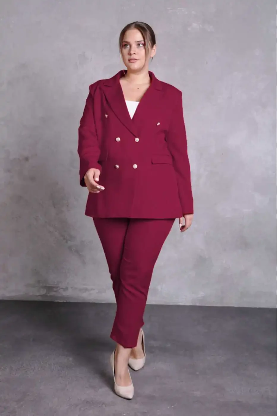 women's suit, burgundy suit, blazer jacket, wide leg pants, plus size suit, stylish suit, elegant suit, women's clothing, office style, special occasions