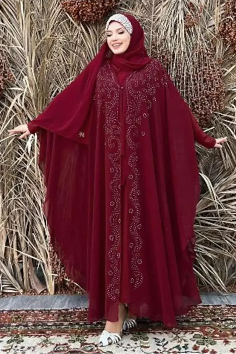 Dazzle at your special occasions and invitations with the Women's Burgundy Embroidered Tulle Two-Piece Ferace Set, which combines elegance and comfort in modest fashion. This ferace set, with its elegant burgundy color, tulle details and embroidery, allows you to achieve a modern and sophisticated look. This two-piece set offers a complete combination with both the ferace and the inner dress, promising you effortless elegance. Thanks to its high-quality fabric, you will have a comfortable wearing experience all day long.Product DescriptionThe Women's Burgundy Embroidered Tulle Two-Piece Ferace Set is an elegant and stylish option that shapes modest fashion. This set, which you can choose in a wide range from special invitations to daily use, allows you to create a unique style by combining the nobility of burgundy color with tulle details and embroidery. The two-piece set consists of a ferace and an inner dress. The ferace has a comfortable cut that does not restrict your freedom of movement, and the elegant embroidery on it adds a different touch to the design. Tulle details offer a romantic and sophisticated touch to the ferace. The inner dress is designed to perfectly match the ferace and creates a stylish silhouette thanks to its fitted cut. Thanks to its high-quality fabric, it does not cause sweating and offers comfortable use all day long. This special design is an ideal choice for veiled women who seek both elegance and comfort. You can choose the Women's Burgundy Embroidered Tulle Two-Piece Ferace Set to reflect your own style and attract attention in your special moments. This set will be an indispensable part of your wardrobe and will always give you a stylish and elegant look. The delicacy of the embroidery and the lightness of the tulle distinguish this set from other ferace models, offering you a special style. You can make a difference in any environment by carrying the warmth and nobility of burgundy color on you. Remember, elegance is hidden in the details and this ferace set helps you reflect your style in the best way by offering you these details. The Women's Burgundy Embroidered Tulle Two-Piece Ferace Set is an excellent option for women who are looking for a difference in modest wear and want to create an original style. With this set, you can combine both traditional and modern lines and create your own unique style. This special design, which will highlight your elegance and grace, will give you unforgettable moments.Product FeaturesColor: BurgundyModel: Two-Piece Ferace Set (Ferace and Inner Dress)Detail: Embroidered and TulleFabric: High Quality FabricCut: Comfortable Cut that Provides Freedom of MovementUsage: Suitable for Special Occasions and Daily UseStyle: Modern and StylishAdditional InformationFollow the washing instructions on the label to use your product for a long time. Different size options are available. Accessories are not included in the product.
