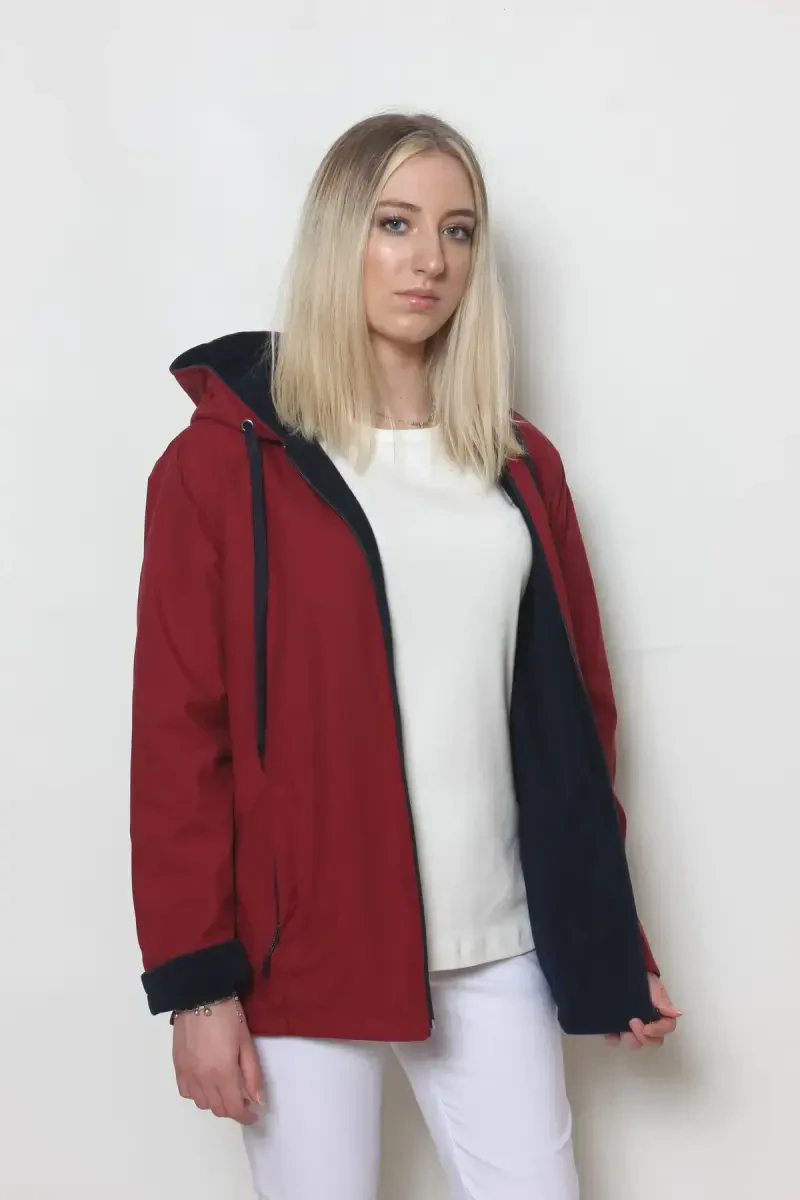 Women's Burgundy Fleece Lined Jacket is a perfect option to keep you both stylish and warm in cold weather. This jacket adds a sophisticated touch to your wardrobe with its burgundy color, while offering all-day comfort thanks to its soft fleece lining. Ideal for both daily use and outdoor activities, this jacket combines functionality and fashion.Product DescriptionWomen's Burgundy Fleece Lined Jacket allows you to stay warm without sacrificing your style on cold winter days. The durable fabric on the outer surface provides protection against wind and light rain, while the fleece lining inside traps your body heat, preventing you from getting cold. The burgundy color can be easily combined with any of your clothes and helps you create a stylish look. The design of the jacket fits your body without restricting your freedom of movement and offers comfortable use. The zippered front closure allows you to easily put on and take off the jacket, while the pockets allow you to safely carry your phone, keys or other small items. Whether you are walking around the city or hiking in nature, this jacket will accompany you and make you feel comfortable at all times. Thanks to its high-quality material structure, it is long-lasting and will be an indispensable part of your wardrobe for years. It is an ideal choice for women who seek both elegance and comfort in cold weather. This jacket not only keeps you warm but also reflects your style. The elegance of the burgundy color and the warmth of the fleece come together to offer you a unique experience. Enjoy the cold weather with the Women's Burgundy Fleece Lined Jacket!Product Features* Burgundy color* Fleece lining* Durable outer fabric* Zippered front closure* Pocket design* Comfortable cut* Cold weather protection* Stylish appearance* Suitable for daily use and outdoor activities* Design that provides freedom of movementAdditional InformationIt is recommended to wash the jacket according to the washing instructions on the label to ensure its long life. Avoid exposure to direct sunlight. Different size options are available for the product. Please review the size chart to choose the size that suits you best.
