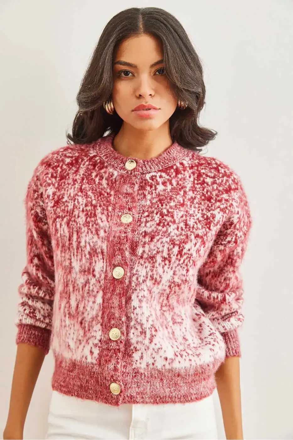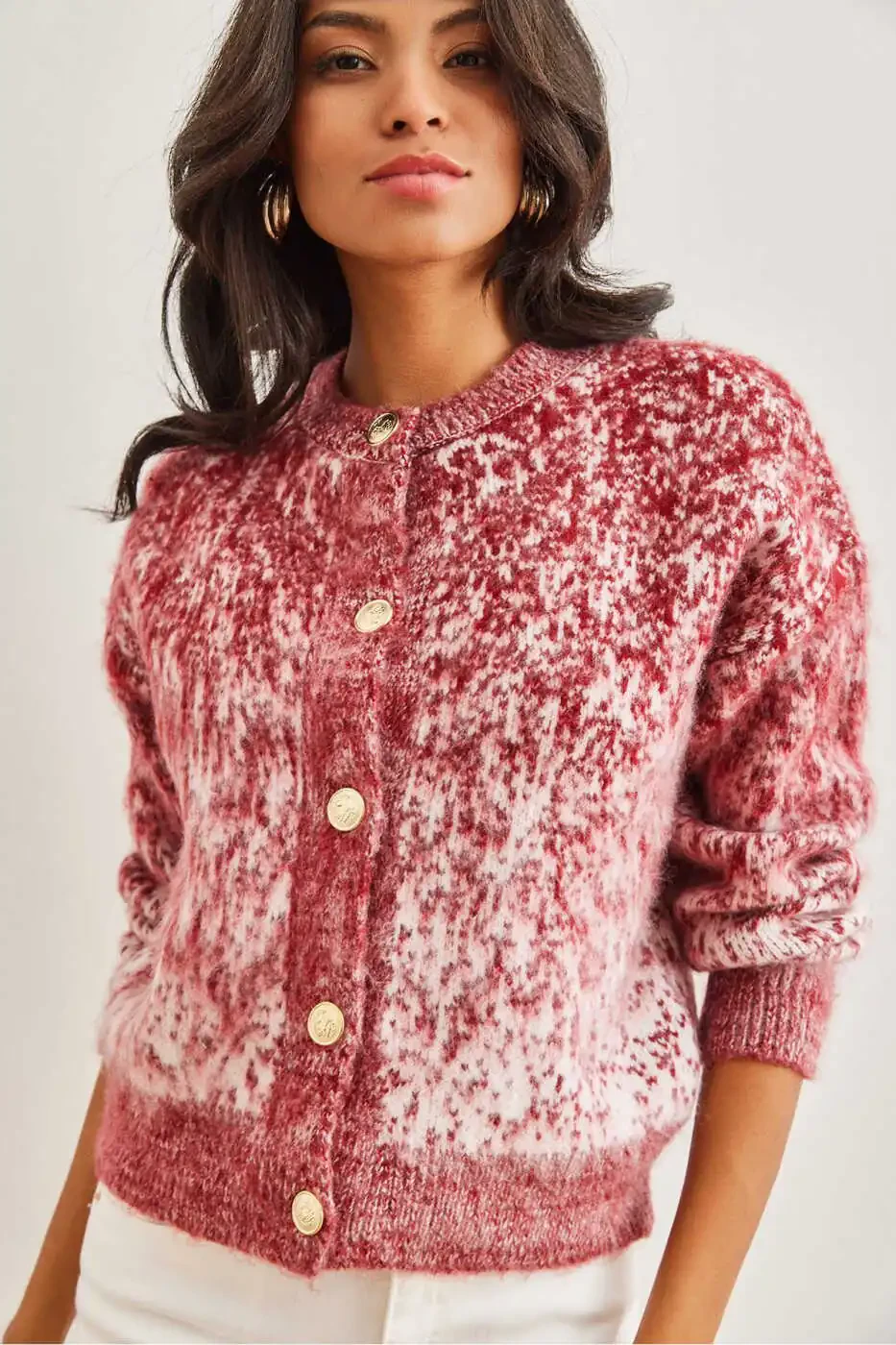 Women's cardigan, burgundy cardigan, soft cardigan, thick cardigan, gradient cardigan, Trendyol