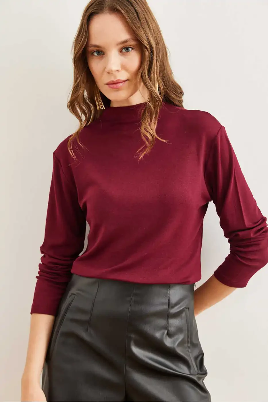 Women's Burgundy High Neck Draped Blouse - Style and Comfort