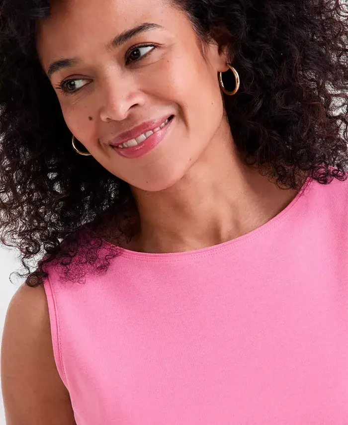 The possibilities are endless with this Style & Co® tank top. In ribbed cotton, its versatile solid color is perfect for layering year-round. Approx. model height is 5'10" and she is wearing a size small Approx. 25-1/2" long Boat neckline; pulls on Sleeveless Modazone Exclusive All of the cotton in this product is U.S. Cotton as verified by the Trust Protocol All cotton Machine washable Imported