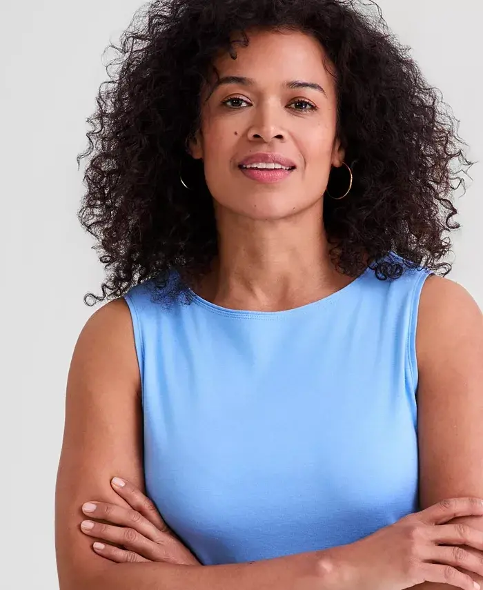 Women's Cotton Boat-Neck Sleeveless Top, Created for Modazone - Sky Dew