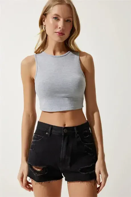 Women's Cotton Ribbed Halter Neck Thick Strap Crop Bustier Gray, a candidate to be one of the indispensable pieces of your wardrobe! This bustier will accompany you in every moment by offering both elegance and comfort. This piece, which attracts attention with its soft texture and modern design, will especially appeal to stylish women. Thanks to its 93% cotton and 7% elastane content, it allows your skin to breathe and offers comfortable use all day long. The softness of the cotton rib fabric gently touches your skin, while the elastane content ensures that it fits your body perfectly and does not restrict your freedom of movement. This way, you can look stylish and feel comfortable all day long.The halter neck and thick strap design add a modern and elegant touch to the bustier. These details beautifully reveal your shoulders and arms, while also adding a different dimension to your outfit. The crop length cut is especially perfect with high-waisted trousers, skirts or shorts. This bustier, which you can easily adapt to your sports and daily combinations, helps you reflect your style.The classic gray color can be easily combined with any piece and allows you to create different styles. You can use it alone or with different tops such as jackets, shirts or cardigans. This way, you can be stylish and comfortable in every season and environment.Women's Cotton Ribbed Halter Neck Thick Strap Crop Bustier Gray is not only stylish but also a durable product. Thanks to its machine washable structure, it can be easily cleaned and maintains its shape for a long time. Ideal for daily use, sports activities or home wear, this bustier will be one of the most preferred pieces of your wardrobe. Discover this unique piece now and take your style one step further!