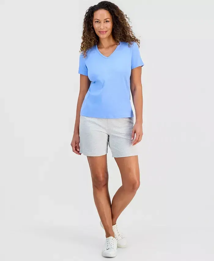 Women's Cotton Short Sleeve V-Neck Top, Exclusively at Modazone - Sky Dew