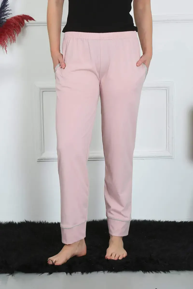 ## Women's Cotton Single Bottom Pajamas with Pockets - Powder