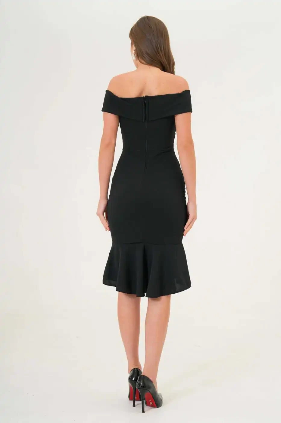 The special design Women's Crepe Fabric Cross Neck Back Zipper Ruffle Slim Fit Black Evening Dress 2870, which offers the perfect combination of elegance and style, is designed to make you shine on your special days. This unique dress stands out with its slim fit that elegantly reveals your body lines, ruffle details that add a feminine touch, and a cross-neck design that complements the back neckline. The noble stance of black combined with the soft texture of crepe fabric offers a comfortable and stylish look. This evening dress will complement your elegance in many different environments, from special invitations to cocktails, from celebrations to special dinners. This special design, which highlights the elegance of women, is a must-have piece in every woman's wardrobe. Your product will be carefully prepared and sent by woman vision. Don't miss the opportunity to own this special evening dress at advantageous prices within the scope of the campaign. Our stocks are limited and there is a risk of rapid depletion. Order now and take your elegance to the next level! This unique design will attract all eyes in any environment you enter. An ideal choice to feel special and express your style. Your product is carefully packaged and prepared to be delivered to you as soon as possible. This special design that will complete your elegance will be indispensable for your wardrobe. Before purchasing the product, it is important to check your body measurements and choose the correct size. Product measurements are given for size S and may vary for other sizes. In addition, if you have any questions about the product or need help with size selection, you can contact us through the question/answer section. Customer satisfaction is our priority and we are happy to offer you the best service. Remember, you will make a difference and attract all the attention in any environment you enter with this special evening dress. Now, it's time to crown your elegance!
