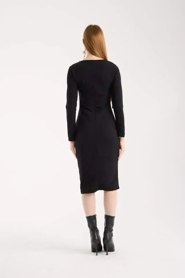 Women's Bicycle Collar Long Sleeve Leather and Zipper Detail Mini Slit Dress has a special design that combines elegance and modernity. This striking dress is a candidate to be an indispensable part of your wardrobe. A perfect balance is achieved with the bold stance of the leather fabric, the elegant cut of the bicycle collar and the comfort provided by the long sleeves. The mini skirt length emphasizes your feminine silhouette, while the slit detail offers a stylish touch without restricting your freedom of movement. Zipper details add a modern and dynamic look to the dress. This dress, which will allow you to make a difference both at special occasions and in daily use, will be appreciated by stylish women. The cut of the dress offers a perfect look thanks to its form-fitting cut. The quality of the fabric and the careful workmanship of the seams promise long-lasting use. You can reflect your own style by combining it with different color and accessory options. Whether you create a stylish look with heels or a more comfortable style with sneakers; this dress will allow you to express your style in any situation. Be sure to have this special piece in your closet and dazzle in every environment. The product on the model is size M/38 and the model's measurements are Height: 165, Kg: 55, Chest: 90, Waist: 72, Hips: 100. This information will give you an idea of how the dress will look on you. The dress is also very easy to care for; By following the instructions on the label, you can use it as if it were the first day for a long time. Don't miss this special piece that will be the star of your wardrobe!