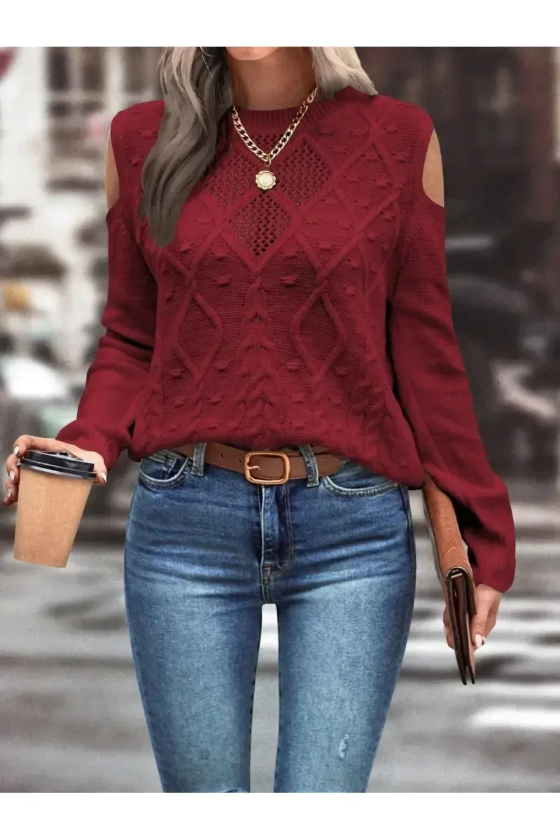 Knitted Crew Neck Cotton Acrylic Sweater - Plain Long Sleeve Standard Fit