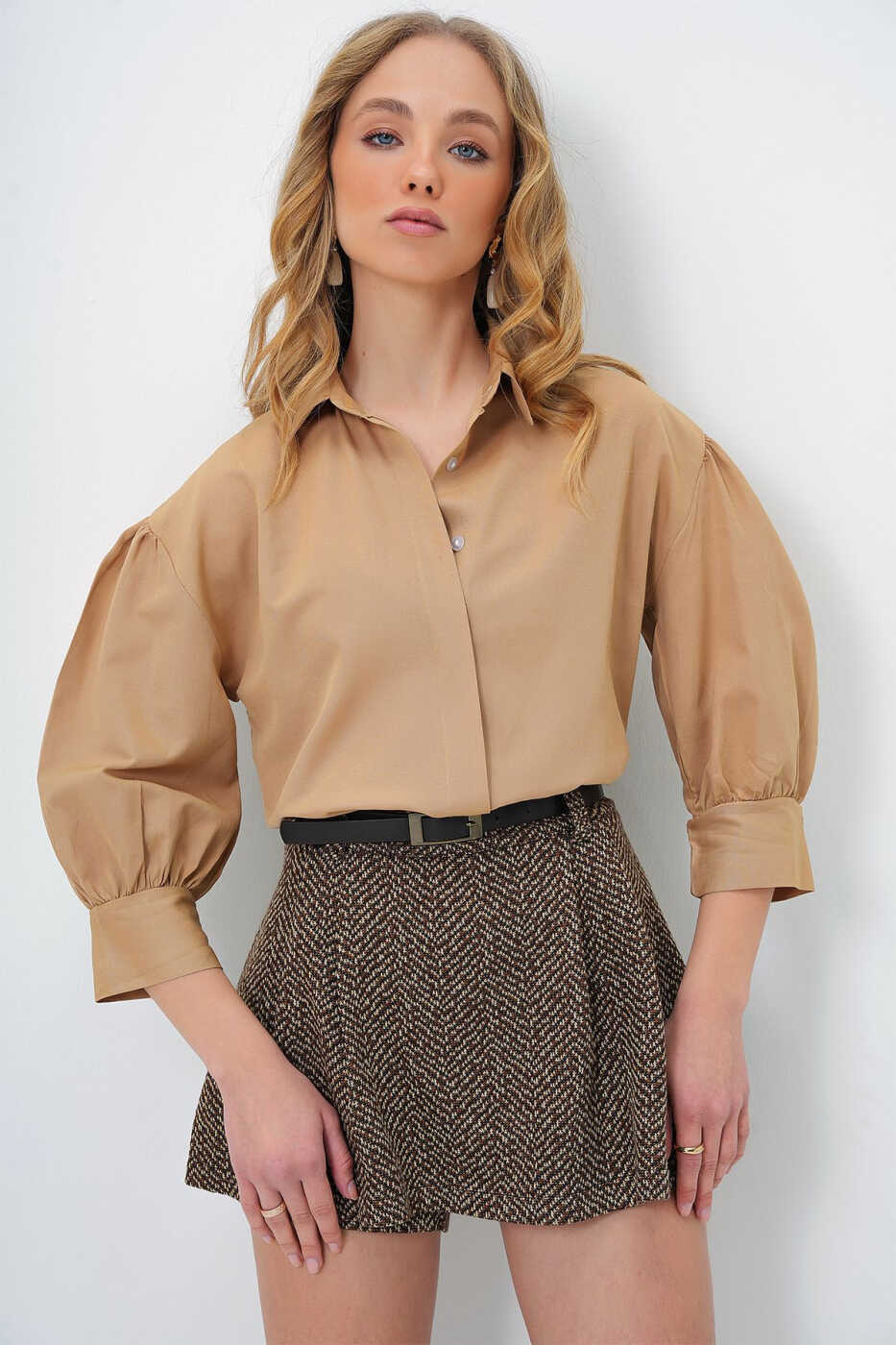 The Women's Dark Beige Balloon Sleeve Concealed Button Basic Poplin Shirt is a perfect choice for any occasion, from everyday life to special occasions. Order this stylish and comfortable shirt that every woman should have in her wardrobe!