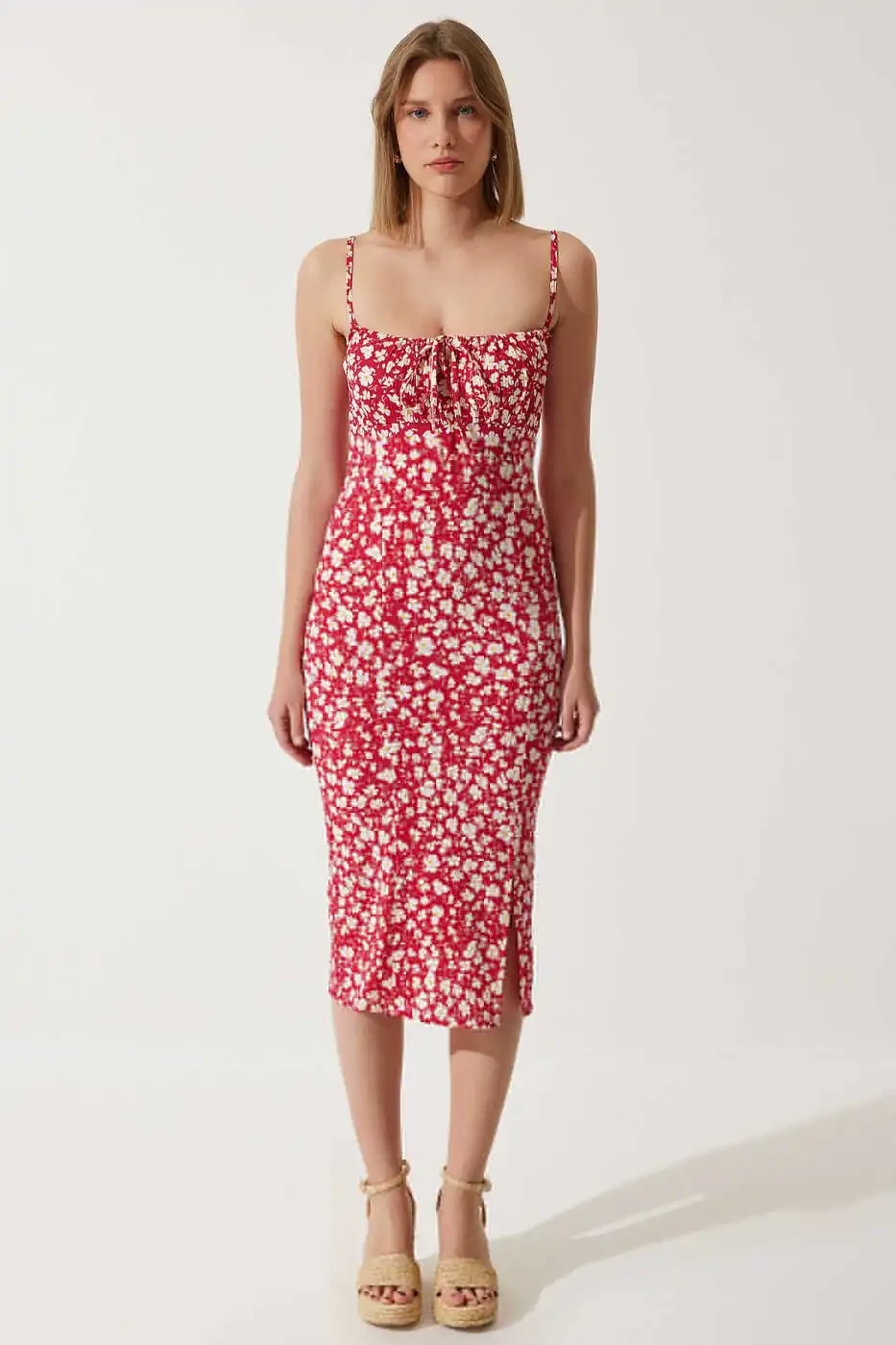 Experience style and comfort with the Women's Dark Pink Floral Slit Summer Knit Dress CI00029, a must-have for summer! Offered with the guarantee of Trendyol -Happiness İstanbul, this dress is available at a campaign price with over 100 units in stock. The vibrant and eye-catching dark pink floral patterns will bring summer energy to your style. The 95% polyester and 5% elastane blend fabric offers all-day comfort with its flexible structure, and its medium thickness makes it suitable for use during seasonal transitions. Its sleeveless design helps you stay cool on hot summer days, while the chic sweetheart neckline and modern slit detail create a dazzling look for any occasion. The midi length allows for comfortable movement without compromising style, both for everyday use and special occasions. Its soft knit fabric leaves a silky feel on your skin, while its easy-care properties will make it a favorite piece in your wardrobe for years to come. Don't miss this dress that will accompany you from casual settings to special events!