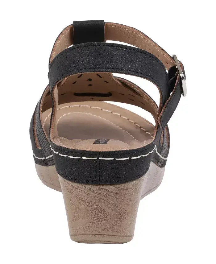 Introducing the Women's Darry Perforated T-Strap Slingback Wedge Sandals from GC Shoes! These stylish and comfortable sandals are poised to become an essential part of your wardrobe. Combining modern design and superior comfort, the Darry sandals are the perfect choice for both everyday wear and special occasions. The T-strap design and adjustable buckled slingback closure system perfectly wrap your feet and provide a secure fit all day long. The perforation details on the sandals not only add a visual richness but also help your feet breathe. This keeps your feet cool and comfortable, even in hot weather. The memory foam technology used in the insole provides extra cushioning and support with every step. This means you won't feel tired in your feet, even if you're standing for long hours. The 2.5" wedge heel and 1.25" platform heel give you height while providing a balanced walk. Darry sandals are an ideal choice for women looking for style and comfort. Whether you create a casual look with jeans or attend a special event with a chic dress, these sandals will always complement your style. Produced with GC Shoes quality, Darry sandals also stand out with their long-lasting and durable construction. These sandals, which you will love to wear in your wardrobe for many years, allow you to keep both your style and comfort at the forefront. Designed for women who care about their foot health and do not want to compromise on style, Darry sandals will accompany you every step of the way. With perforated details, wedge heel design, and memory foam insole, these sandals not only give you an eye-catching look but also keep your feet comfortable all day long. Reflect your style and enjoy comfort with GC Shoes Women's Darry Perforated T-Strap Slingback Wedge Sandals!