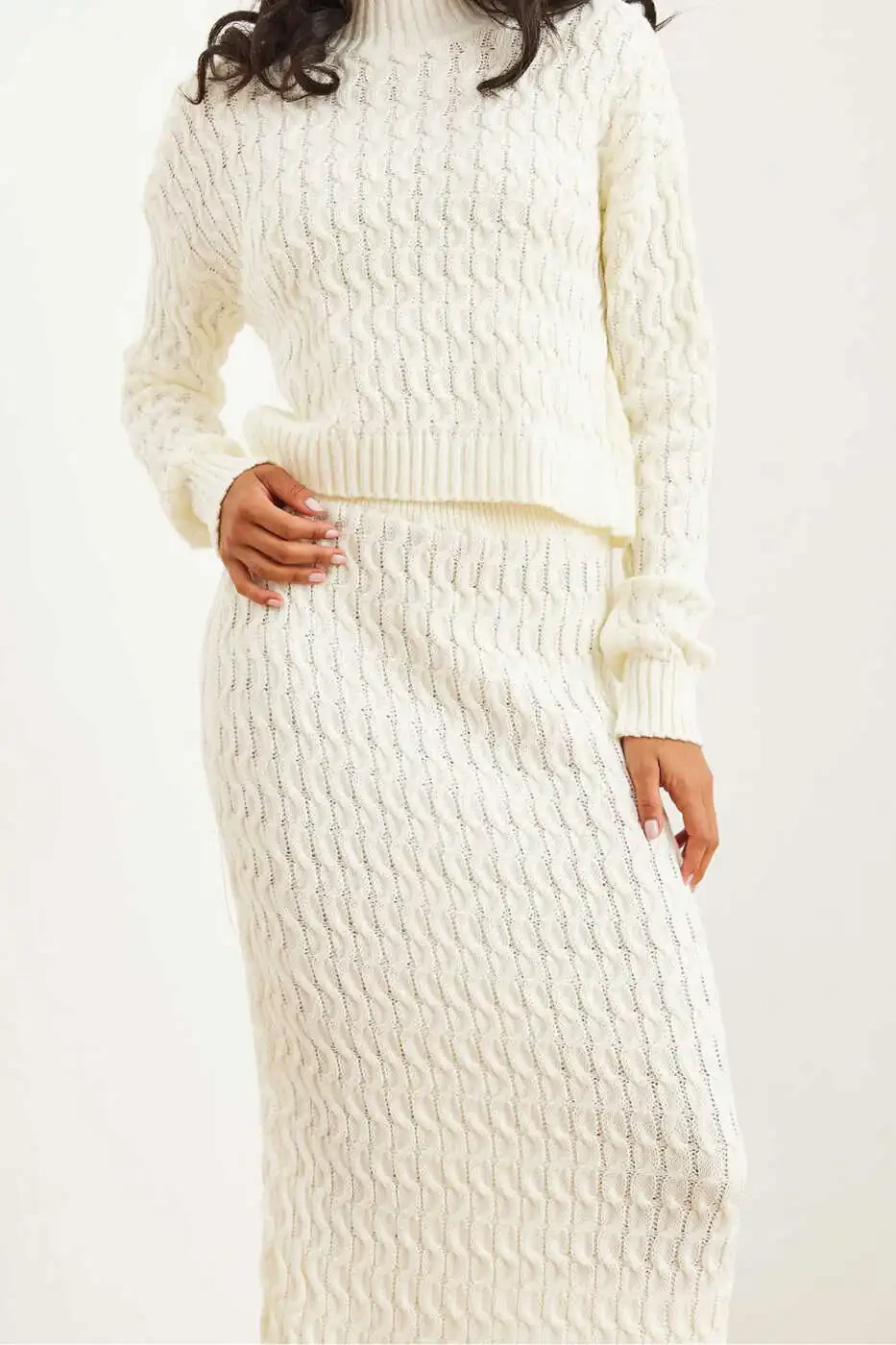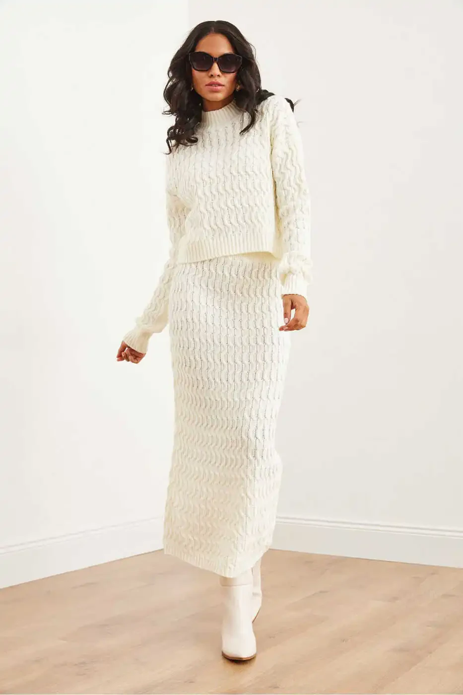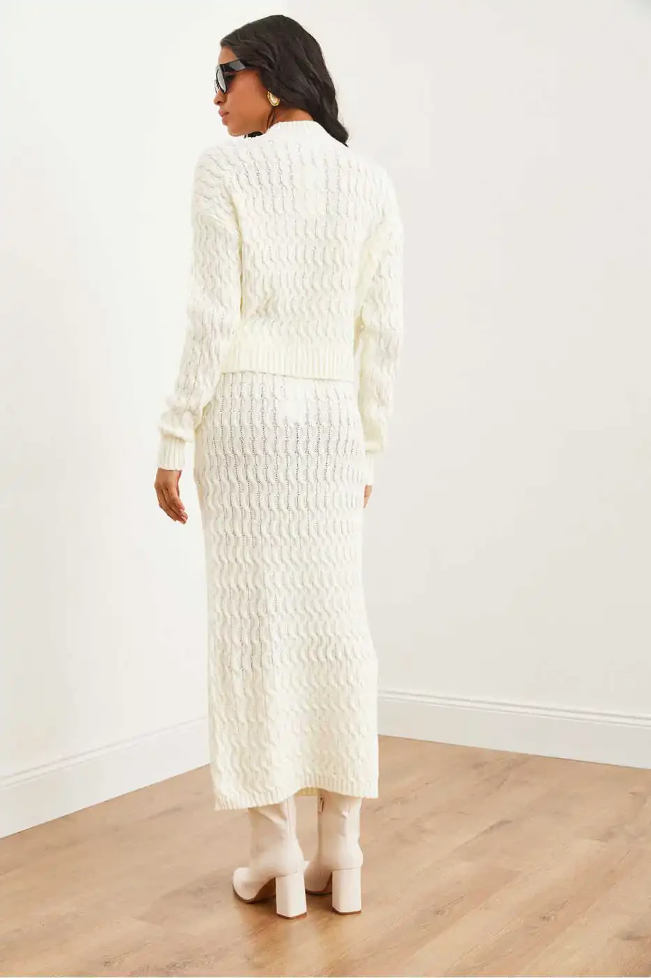 Women's Ecru Cable Knit Top and Bottom Set | Trendyol