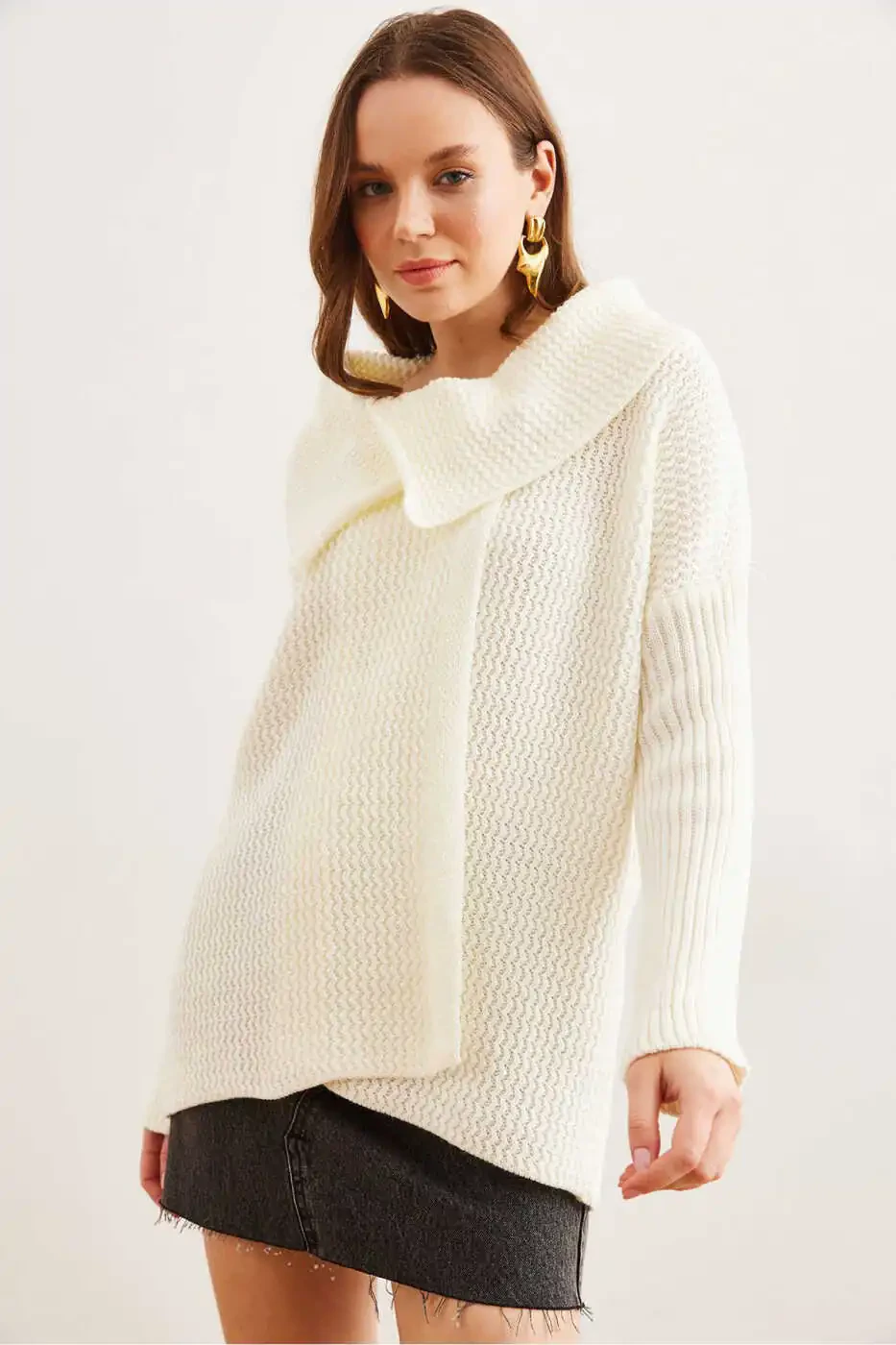 **Women's Ecru Envelope Neck Buttoned Cardigan HRK-19000326**