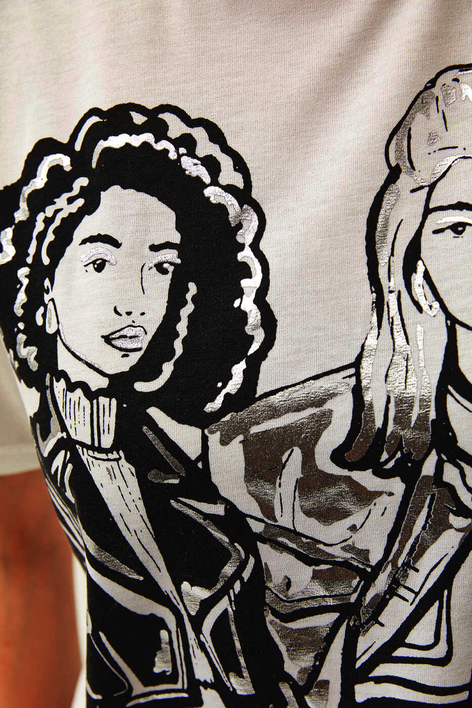 TSH-19000772 Women's Ecru Foil Detailed Loose T-shirt can be combined with jeans, shorts, skirts or leggings. You can complete the look with sneakers, sandals or high heels. You can complete your combination by decorating your T-shirt with a stylish necklace or earrings.