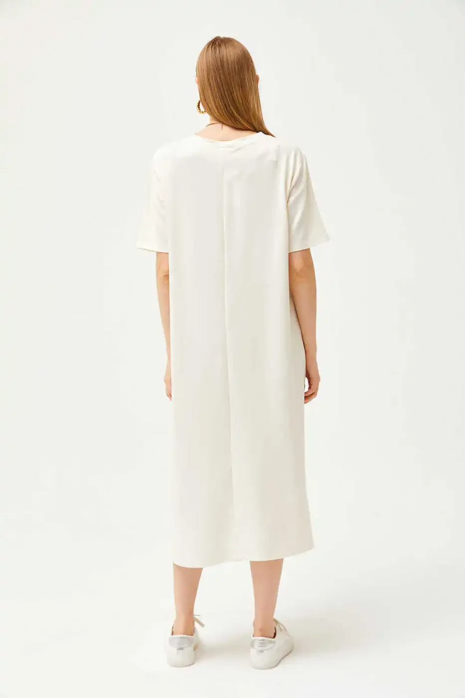 The ecru color will complement every skin tone and make you look even more beautiful. The relaxed cut of the dress offers a stylish look without restricting your freedom of movement. You can easily use this dress in everyday life, special occasions or business life, it will adapt to every environment.