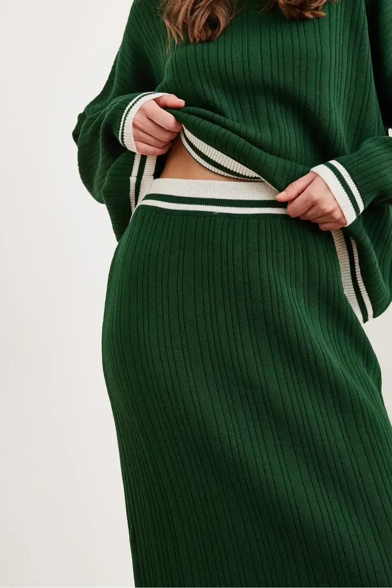 Acrylic, Wool, Knitted, Turtleneck, Long Sleeve, With Pockets, Midi, Straight Skirt, Slit, Autumn-Winter