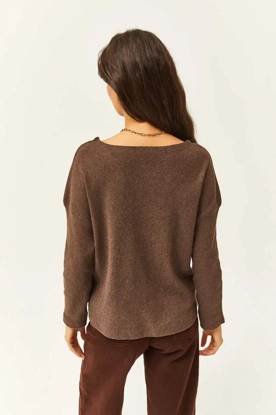 Women's sweater, bitter coffee sweater, thistle sweater, loose sweater, button-down sweater, comfortable sweater, everyday sweater, timeless sweater, durable sweater, easy-to-clean sweater