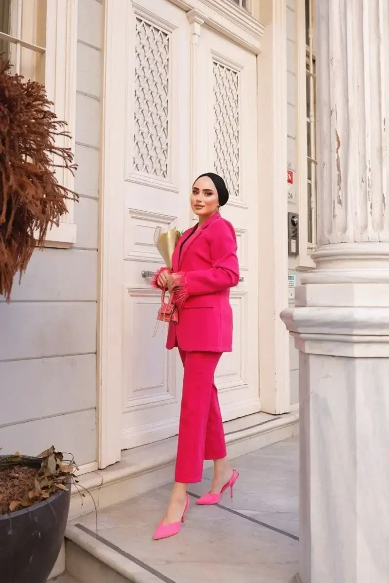 This suit is perfect for job interviews, dinners, special occasions, or everyday wear. You can combine the jacket with a casual t-shirt or blouse to achieve a relaxed chic look, or complete the pants with stilettos or heeled shoes for a sophisticated look.
