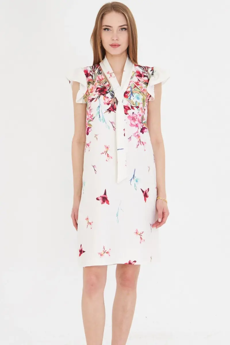 The product on the model is size S, the model's measurements are: Height: 1.75 cm, Bust: 85 cm, Waist: 60 cm, Hips: 90 cm. The fabric content of the product is 100% Viscose. It is recommended to wash in a delicate wash program. Do not use bleach. Iron on low heat. Dry cleaning can be done.