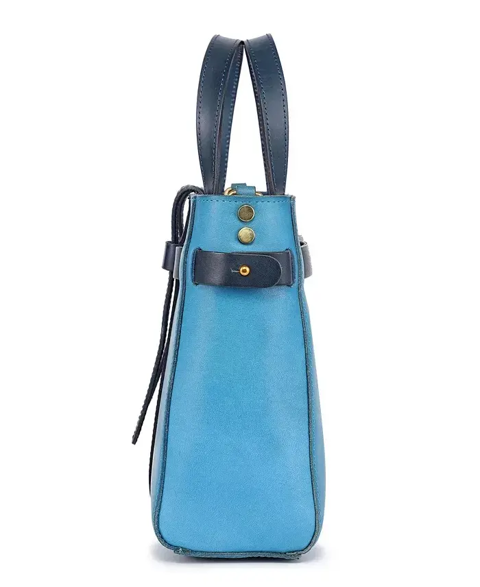 Look stylish and stay organized with the Westland Mini Tote. This mini tote bag features multiple interior pockets to keep your essentials organized on the go. It is completed with comfortable top carry handles and unique leather detailing. The Westland Mini Tote is a perfect choice for your daily use. Whether you are going to work, shopping, or traveling, this bag will meet all your needs. It is made of high-quality 100% genuine leather and is durable. It is colored with 100% vegetable-based dyes and is environmentally friendly. Thanks to its 100% cotton inner lining, your belongings will be safe and protected.The Westland Mini Tote is very useful despite its small size. It measures 10" W x 8.5" H x 2.5" D. It has a 4.75" long top carry handle and a 24" long adjustable and removable shoulder strap. The zipper closure ensures the safety of your belongings. It features an embossed Old Trend logo and gold-tone hardware on the outside. The interior features a cotton lining, an embossed Old Trend logo, 1 zippered pocket, 2 open pockets, 1 multi-purpose key clip, and 1 pen/pencil slot. Weighing only 1 lbs, you can carry it comfortably all day long.This stylish and practical bag will complement any outfit and complete your style. Whether you're dressing up for everyday wear or a special event, the Westland Mini Tote will always be the perfect choice. Thanks to the numerous pockets and compartments inside the bag, you can store your belongings in an organized manner. You can easily find your phone, wallet, keys, makeup and other personal items. Thanks to the adjustable shoulder strap, you can carry the bag on your shoulder or crossbody. Thanks to its light weight, you can carry it comfortably all day long. The Westland Mini Tote is an ideal choice for women looking for a bag that is both stylish and functional. You can buy it as a gift for yourself or your loved ones.The Westland Mini Tote is not only stylish and functional, but also durable and long-lasting. It is made of high quality materials and carefully crafted. With proper care, you can use it for years. To clean your bag, use a damp cloth and brush off any accumulated dirt inside. Before storing your bag, clean it thoroughly and store it in its original dust bag. Keep the moisture pack inside the bag to keep your bag dry. Keep your bag away from direct sunlight and artificial light, otherwise the color may fade.Offering an energetic and vibrant look with its turquoise color, the Westland Mini Tote will make you stand out in any environment. This special design bag will be an indispensable part of your wardrobe and will help you reflect your style. Feel special and complete your elegance with the Westland Mini Tote.