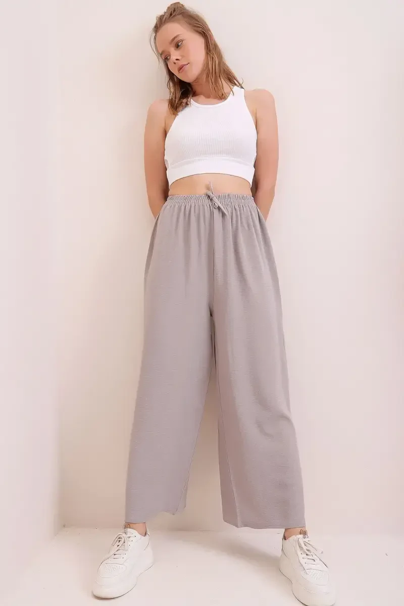 Ideal for those seeking comfort and style in their daily lives or during sports, these gray aerobic pants with their relaxed fit design and stretchy waistband allow you to move freely with every step. The cotton fabric provides comfort all day long with its soft and breathable structure. The elastic waistband and drawstring allow for a perfect fit for different body types. The relaxed fit design supports you in living an active lifestyle without feeling restricted. It is an ideal choice for those seeking both style and comfort in their sporting activities or everyday use.