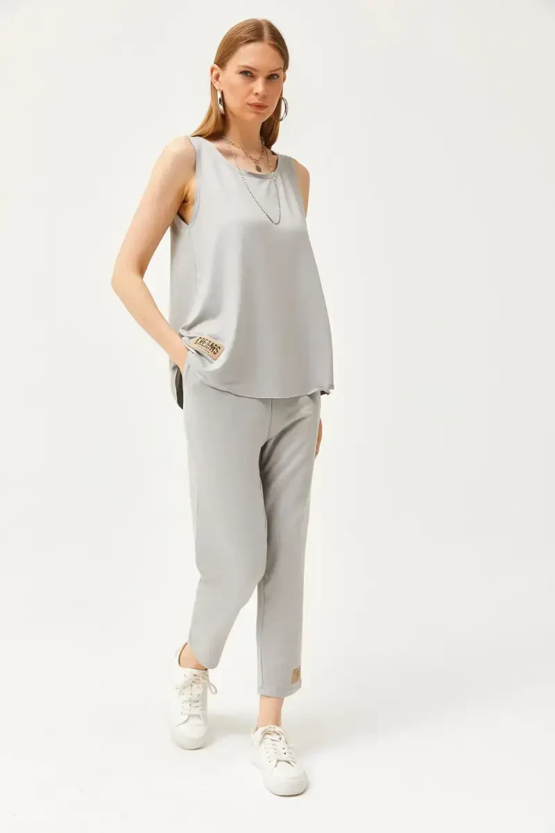 Women's Grey Sleeveless Baggy Blouse Top and Bottom Crystal Jewelry is a special combination that brings elegance and comfort together. This set, carefully designed by olalook official, is a candidate to be one of the indispensable pieces of your wardrobe. This special product, offered at a campaign price, is produced in limited quantities and offers an unmissable opportunity for those who want to catch elegance. This product, which can be offered by different sellers, is listed by considering factors such as the most advantageous price, seller score, fast delivery, and shipping options. In this way, it is aimed to provide you with the best experience in your shopping.This stylish set can be ordered up to 10 pieces, while Trendyol reserves the right to cancel. Different limits may be set for corporate orders. If you are not satisfied with the product, you can return it free of charge within 15 days.The elastic waist detail, designed with your comfort in mind, provides comfortable use throughout the day. This set, which is a simple and stylish piece of the basic collection, will easily find a place in every wardrobe. Consisting of two pieces, blouse and trousers, it eliminates the trouble of combining and reaches a wide user base thanks to its design that appeals to all age groups.The high waist cut gently reveals your body lines and creates a stylish silhouette. The slim fit trousers model offers a modern and trendy look. This set, which is extremely ideal for daily use, can be easily preferred in casual environments.It is recommended to maintain the product in accordance with the washing instructions for long-lasting use. The boat neck detail adds a feminine touch, while the plain design highlights simplicity. Thanks to its medium-thick fabric, it offers ideal comfort in seasonal transitions. It guarantees comfort with its lightweight structure that keeps you cool in the summer season. The long leg trousers cut makes your legs look longer than they are, adding a different touch to your look. The crystal jewelry detail adds an elegant sparkle to the combination, completing your elegance on special days and invitations. This set will allow you to express your style both in daily life and in special moments.