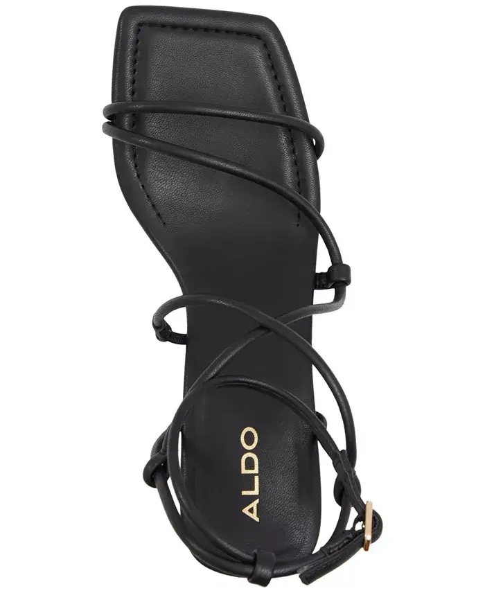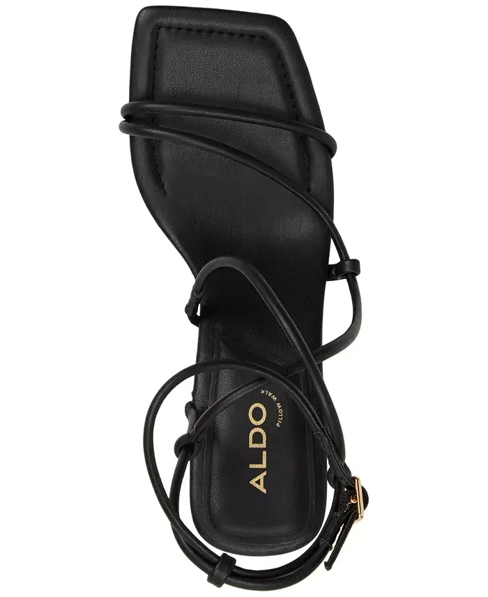 Crisscrossing cords pair a strappy silhouette over trend-right block heels in the ALDO Harmonni sandals. 2-1/2" block heel Square toe Buckled ankle strap Aldo Pillow Walk- Cushioned insole designed with dual-density padding Manmade upper; unlined; rubber sole Imported
