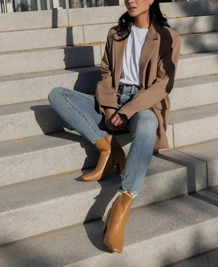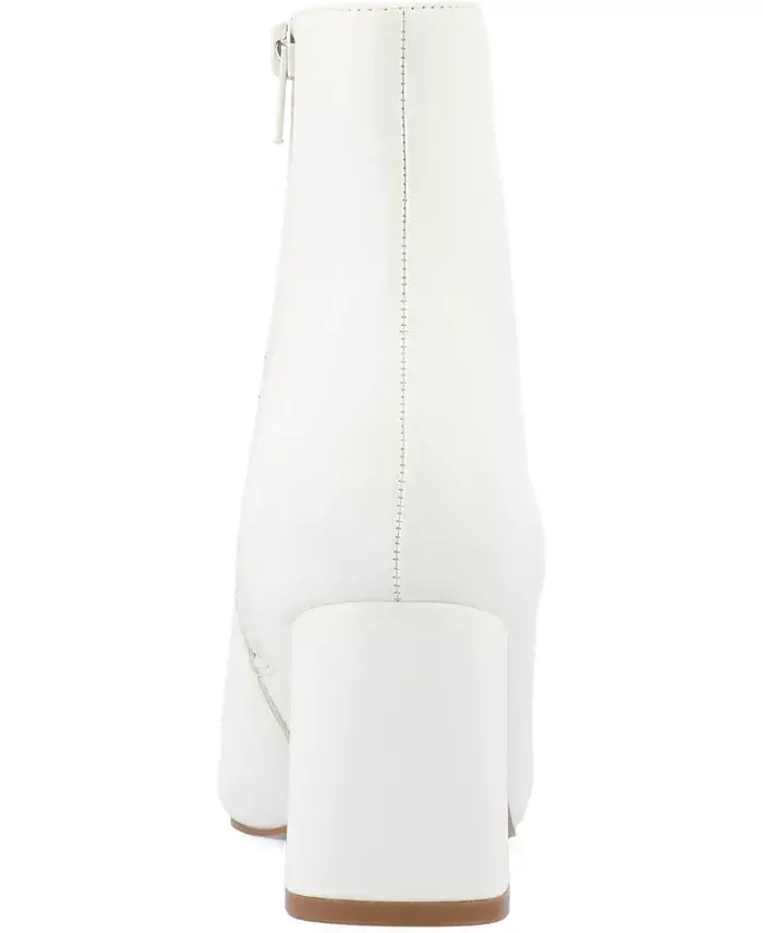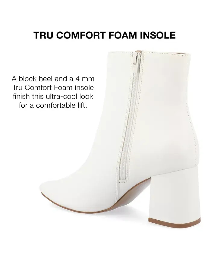 Instantly elevate any outfit with the Haylinn by Journee Collection. This bootie keeps it effortlessly chic with faux leather uppers and a zipper entry makes them easy to slip on. Available in medium and wide widths. Heel height and heel type - 2.5" block heel Entry details - zipper Toe style - square Faux Leather- Polyurethane Spot clean Imported