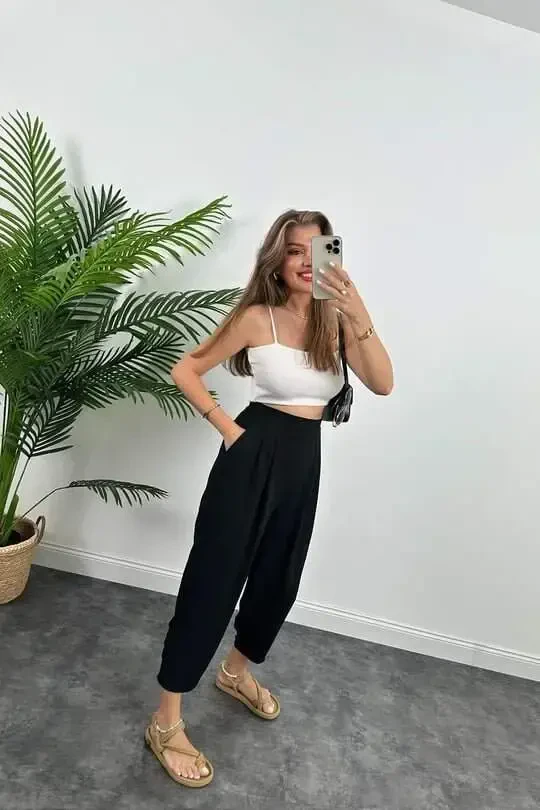 Our Hürrem Pants Women's High Waist model is a special design that combines elegance and comfort. The high-waisted cut subtly accentuates your body lines while offering comfortable wear all day long. An ideal choice for both everyday use and special occasions, these pants will be an indispensable part of your wardrobe. The Hürrem Pants, which stand out with their fabric quality and stitching details, promise long-lasting use.Product DescriptionMeet the Hürrem Pants! Prepared with the perfect harmony of modern and elegant design, these high-waisted pants will take your style to the next level. The high-waisted cut, which perfectly wraps your body lines, highlights your elegance while allowing you to move comfortably throughout the day. Whether you prefer it in your daily combinations or at special events, the Hürrem Pants are a versatile piece that can adapt to any environment. Thanks to its quality fabric, it offers long-lasting use, while the care in the stitching details completes the elegance of the trousers. Hürrem Pants are not just a piece of clothing, but also a style statement. You will always feel special and confident with these pants, which are candidates to be the most loved piece of your wardrobe. Offered in different color and size options, Hürrem Pants appeal to every style and body. You can reflect your own style by using accessories that will complete your combinations. Whether you combine it with a stylish blouse and heels or a sporty t-shirt and sneakers, Hürrem Pants will always attract attention. Come and redefine your style with Hürrem Pants and enjoy the elegance and comfort in every moment. These pants are not just a piece of clothing, but also a lifestyle. Choose Hürrem Pants to feel special and reflect your style in the best way. Remember, style is hidden in the details and Hürrem Pants are designed to add an elegant touch to your style. Always show your best version with Hürrem Pants, which combines your elegance and comfort.Product Features* High waist cut* Elegant and modern design* Comfortable use all day long* Quality fabric structure* Careful stitching details* Different color options* Ability to adapt to every style* Long lasting use* Cut that wraps body lines* Ideal for both daily and special occasionsAdditional InformationThe size on the model is 36. The fabric content of our product is 95% Cotton, 5% Elastane. It is recommended to clean it according to the washing instructions. The colors of the product may vary due to light differences in studio shots.