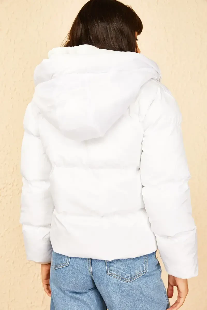 White Hooded Puffer Jacket | Women's Jacket | Zippered, Pockets