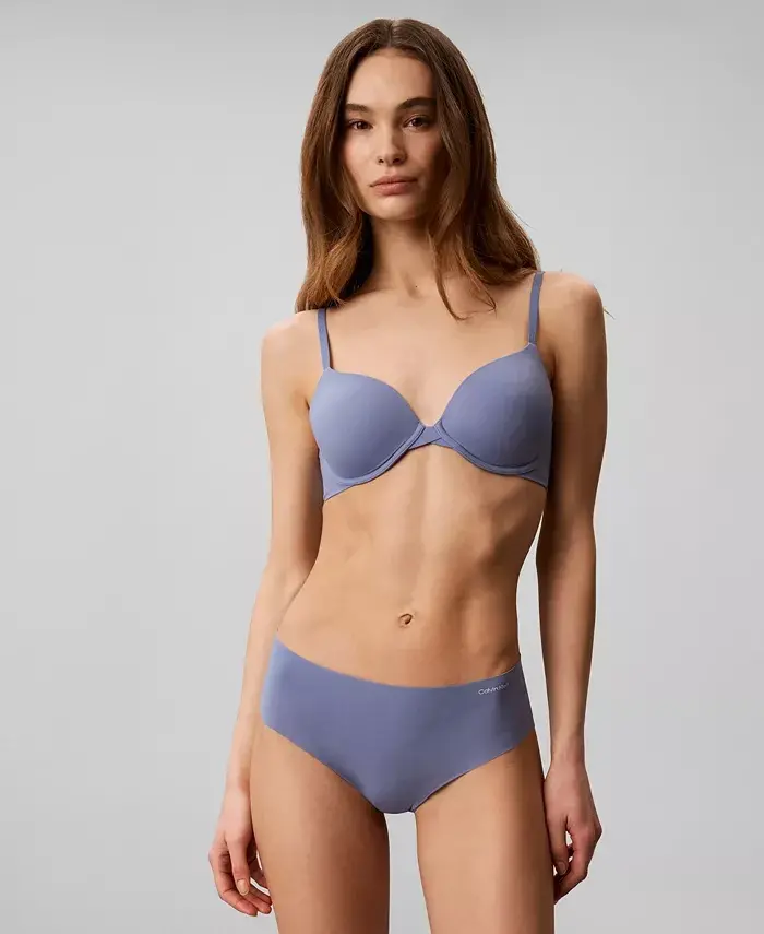 This comfortable hipster from Calvin Klein features seam-free edges for a smooth, line-free look under clothing. Stock up with a convenient 5-pack. Calvin Klein logo at left waist No tag for comfort Lined at gusset Comes in a pack of 5 Light waistband Panty style: hipster Body: 75% nylon, 25% elastane; gusset: 72% nylon, 28% elastane Machine wash Imported