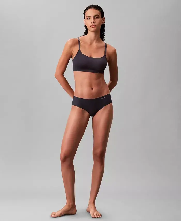 Practically invisible under your clothes, this pull-on Calvin Klein bralette is designed in smooth microfiber with clean-cut edges. Coverage: full-coverage Straps: adjustable straps Cups: wireless, lightly-lined cups with removable pads Special features: seamless, elastic waistband; clean-cut edges; scoop neck; logo at hem Closure: pull-on style 77% nylon, 23% elastane Hand wash Imported