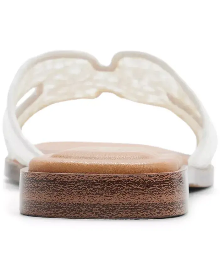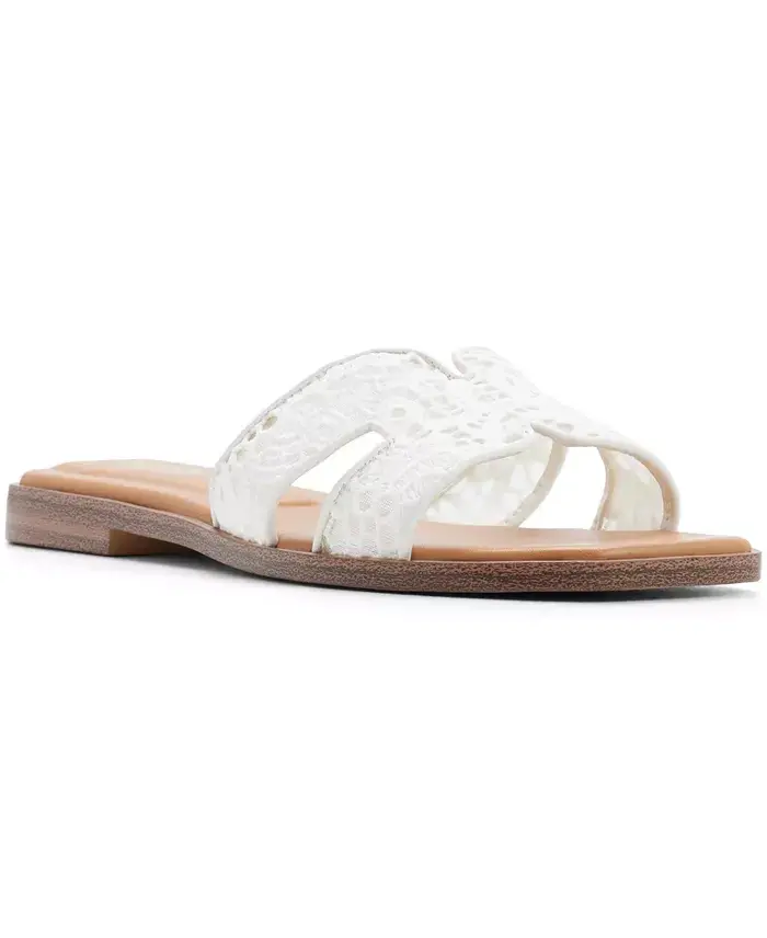 Cutouts and notches add interest to a simple slide silhouette in the go-to Itsandal sandals from ALDO. Flat heel: 0.5" Round toe Slip on Cushioned insole designed with dual-density padding Upper: 100% leather; lining: 100% leather; sole: rubber Imported