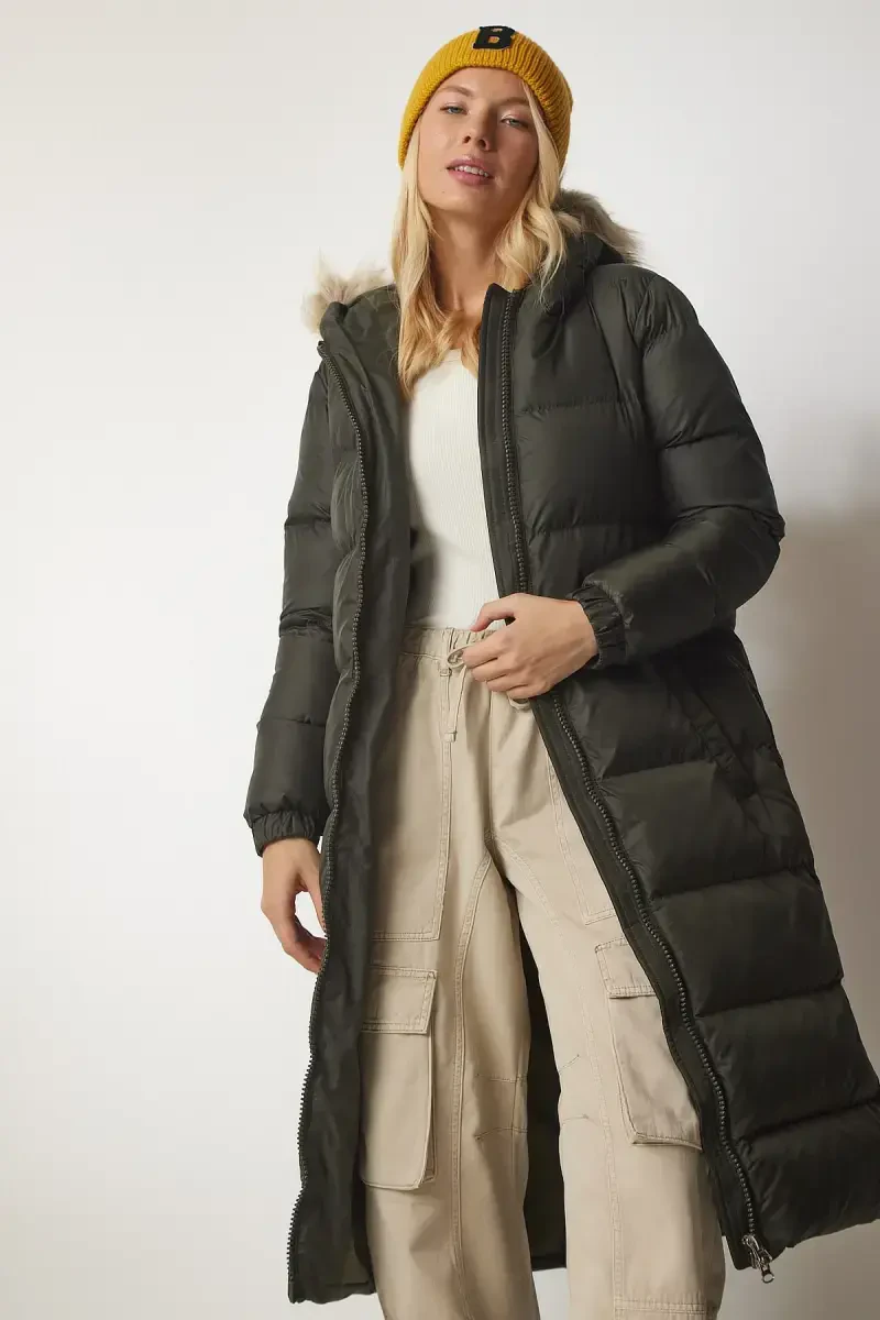 Women's Khaki Hooded Long Puffer Coat VP00001-Khaki is a perfect option for your daily use. Combining comfort and style, this coat is a candidate to be an indispensable part of your wardrobe. The khaki color complements your style by harmonizing with every combination. Thanks to its long cut and hooded design, it keeps you warm in cold weather while offering a modern and elegant look. The zippered closure system allows you to put it on and take it off easily, offering practical use. This coat reaches your door with Trendyol's assurance, and your satisfaction is prioritized. This product, which can be offered by more than one seller, is offered to you with the best price and seller conditions. Thanks to the free return option within 15 days, you can try the product with peace of mind. While its thin structure does not weigh you down, its lined interior provides extra warmth and comfort. Both stylish and functional, this coat is an ideal choice for women aged 21-40. The slit details do not restrict your freedom of movement while adding a modern touch. As part of the Basic collection, it has a timeless design and always stays in fashion. Thanks to its 100% polyester material, it is durable and long-lasting. It allows you to always feel stylish and comfortable in your daily activities, while walking around the city, or meeting with your friends. Enjoy staying warm without sacrificing your style in cold weather with the Women's Khaki Hooded Long Puffer Coat VP00001-Khaki. This coat is not just a piece of clothing, but also an expression of a lifestyle. Combining both modern and classic styles, this coat makes you stand out in any environment. Get ready to be the most loved piece of your wardrobe!